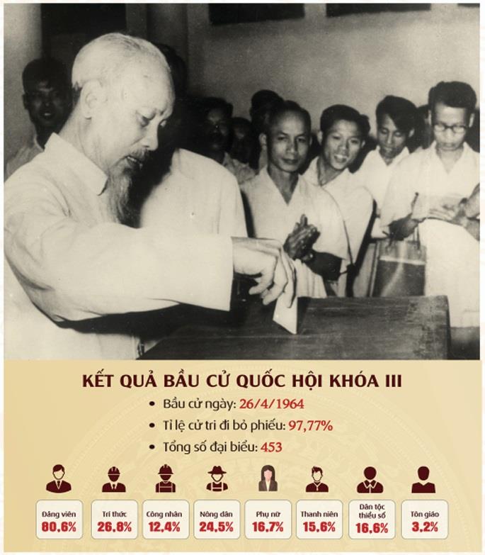 Quốc hội khoá III, được tổ chức theo Hiến pháp năm 1960, là Quốc hội của thời kỳ đất nước thực hiện cả hai chiến lược cách mạng, thời kỳ chống Mỹ cứu nước "tất cả cho tiền tuyến, tất cả để thắng giặc Mỹ xâm lược". Miền Bắc tiến hành công cuộc xây dựng chủ nghĩa xã hội; Miền Nam đẩy mạnh cuộc đấu tranh giải phóng. Cao trào thi đua yêu nước dâng lên mạnh mẽ chưa từng có.