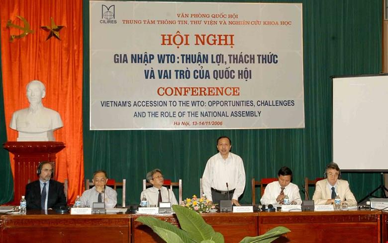 Tháng 11 năm 2006, tại kỳ họp thứ 10, Quốc hội nước ta đã phê chuẩn Nghị định thư gia nhập Hiệp định thành lập Tổ chức thương mại thế giới (WTO) của nước Cộng hoà xã hội chủ nghĩa Việt Nam, hoàn tất thủ tục pháp lý quan trọng cuối cùng để nước ta chính thức trở thành thành viên của WTO. Đây là sự kiện có ý nghĩa quan trọng khẳng định vị thế đất nước ta, thể hiện chính sách đối ngoại rộng mở, đa phương hóa, đa dạng hóa các quan hệ quốc tế và chủ động, tích cực hội nhập kinh tế quốc tế. Hoạt động đối ngoại của Quốc hội đã phục vụ nhiệm vụ phát triển kinh tế trên cả bình diện song phương, đa phương, tích cực vận động các đối tác kết thúc đàm phán để Việt Nam gia nhập WTO.